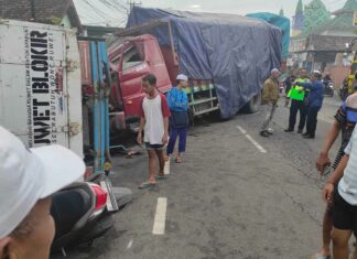 Tabrakan Beruntun Tiga Truk Satu Motor di Pacing, Bangsal, Mojokerto