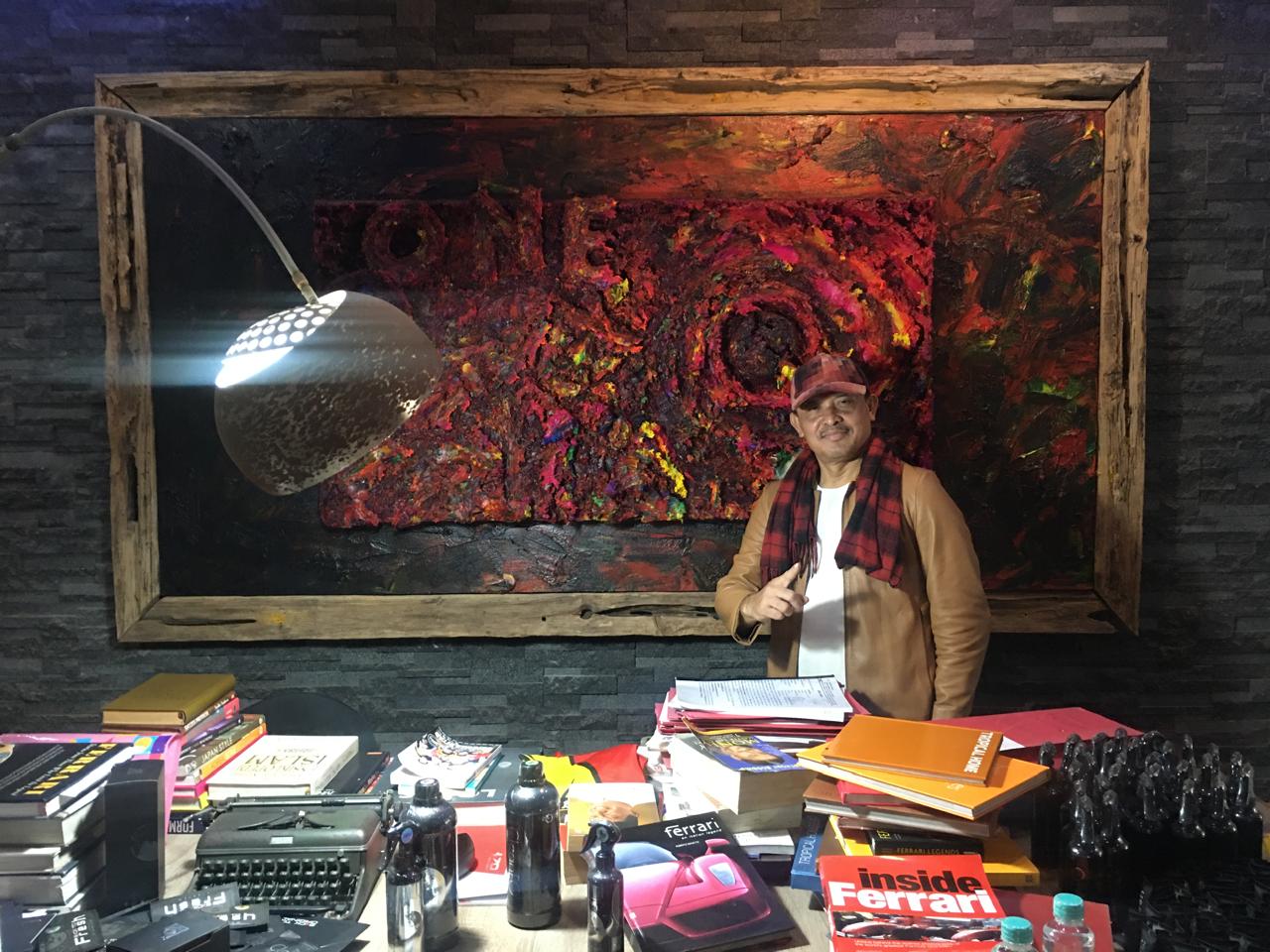 Salah satunya berjudul Q-One, dengan bobot mencapai 70 kilogram. Karya lainnya menggambarkan legenda Formula 1 asal Jerman, Michael Schumacher, duduk tegap di balik kemudi mobil Ferrari. Lukisan bertekstur tebal itu memiliki berat hingga 200 kilogram.