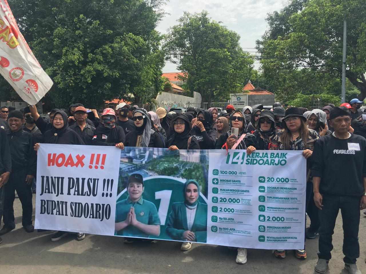 Aksi berlangsung sejak pagi dengan membawa beragam poster dan seruan perbaikan tata kelola pemerintahan. Peserta aksi menilai kondisi Sidoarjo semakin memprihatinkan, mulai dari infrastruktur yang rusak, banjir yang semakin sering merendam kawasan permukiman dan jalan protokol, hingga layanan dasar yang dinilai berjalan “setengah hati”.