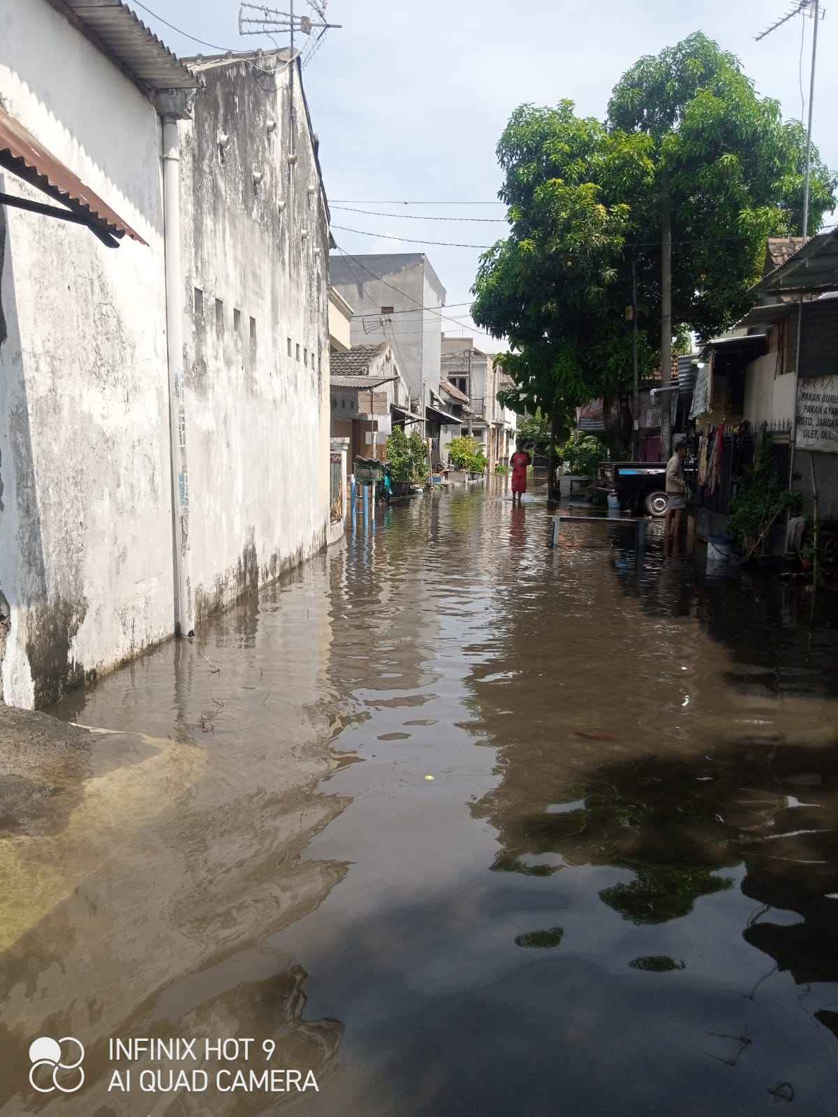 “Biasanya genangan di Sidokare cepat surut setelah hujan berhenti. Sekarang air tetap merendam permukiman dari Rabu malam sampai Kamis siang,” kata Nila Paramita, warga RT 23 RW 06 Sidokare.