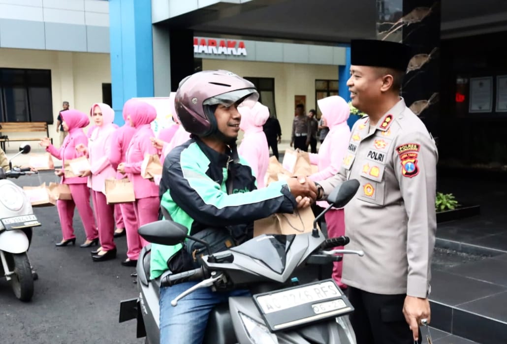 Selain berbagi makanan berbuka, petugas juga menyampaikan imbauan keamanan dan ketertiban masyarakat (kamtibmas) serta mengingatkan pentingnya disiplin berlalu lintas selama Ramadan.