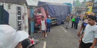 Tabrakan Beruntun Tiga Truk Satu Motor di Pacing, Bangsal, Mojokerto