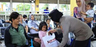 Senyum Polwan di Terminal Purabaya, Sidoarjo, Hangatkan Perjalanan Nataru